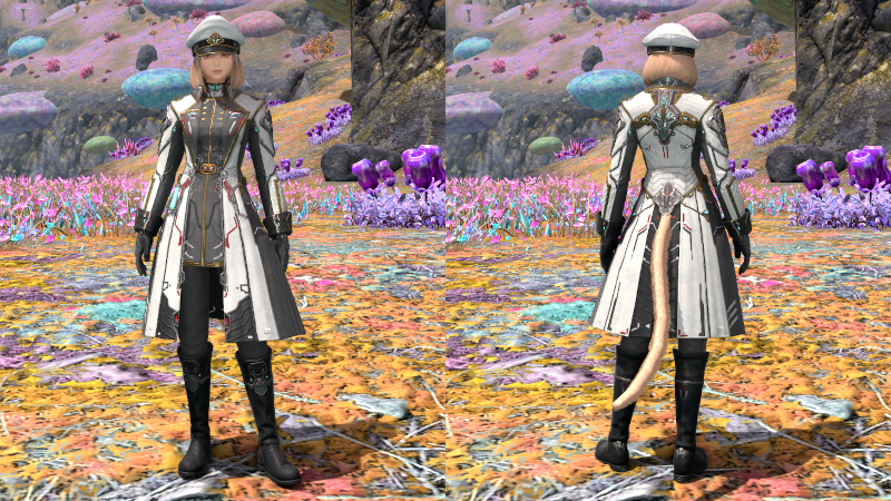 | コスモキャプテン装備 頭:コスモキャプテン・ハット(7.31) 胴:コスモキャプテン・コート(7.31) 手:コスモキャプテン・グローブ(7.31) 脚:コスモキャプテン・トラウザー(7.31) 足:コスモキャプテン・ブーツ(7.31) |