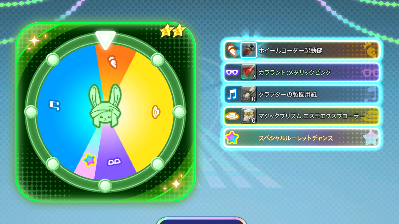 ルーレット報酬はエリア(焦がれの入江/惑星パエンナ)で違います。