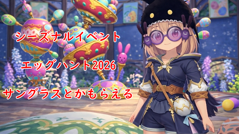 タマゴの季節、シーズナルイベント「エッグハント2026(タマゴ探しもエキサイティング!)」が始まり、今回のイベント報酬は「いろいろなサングラス/調度品」が得れます。
