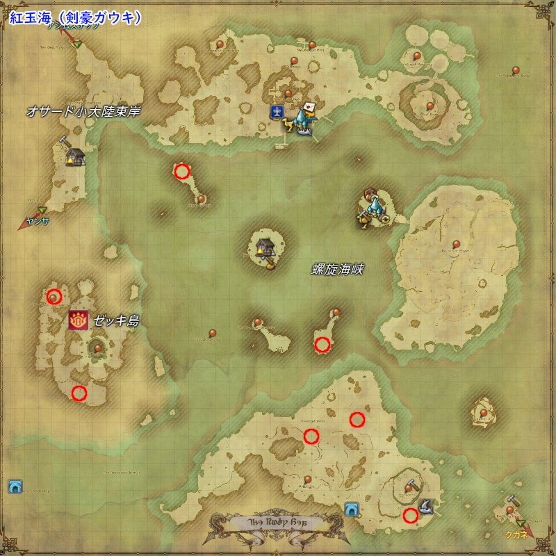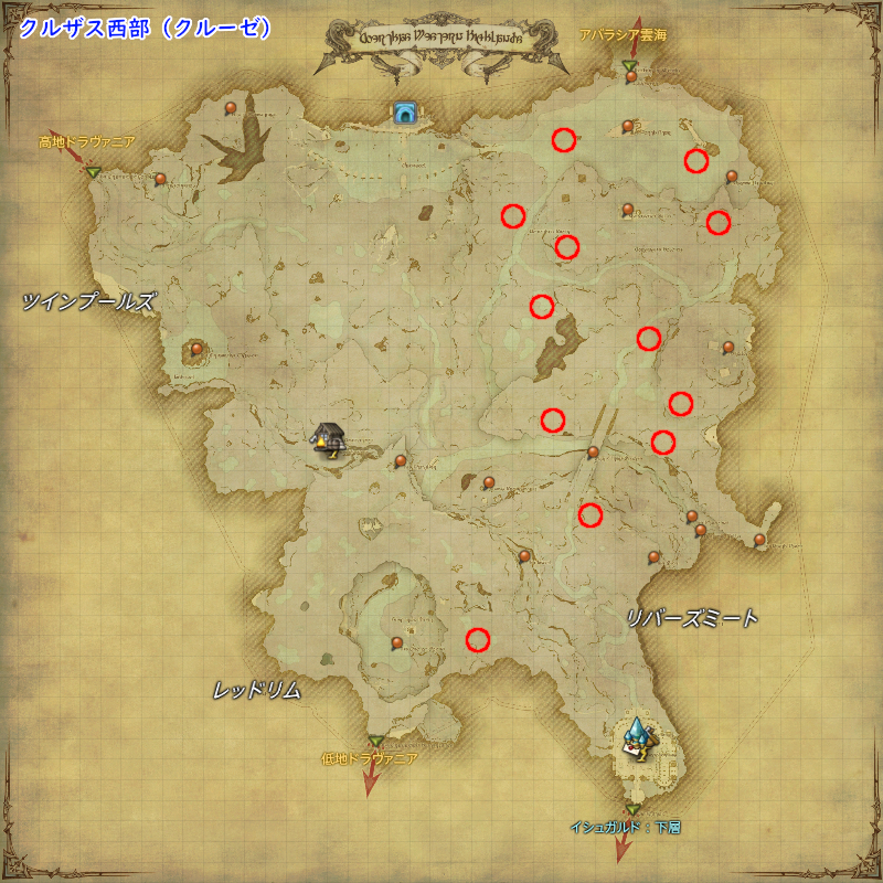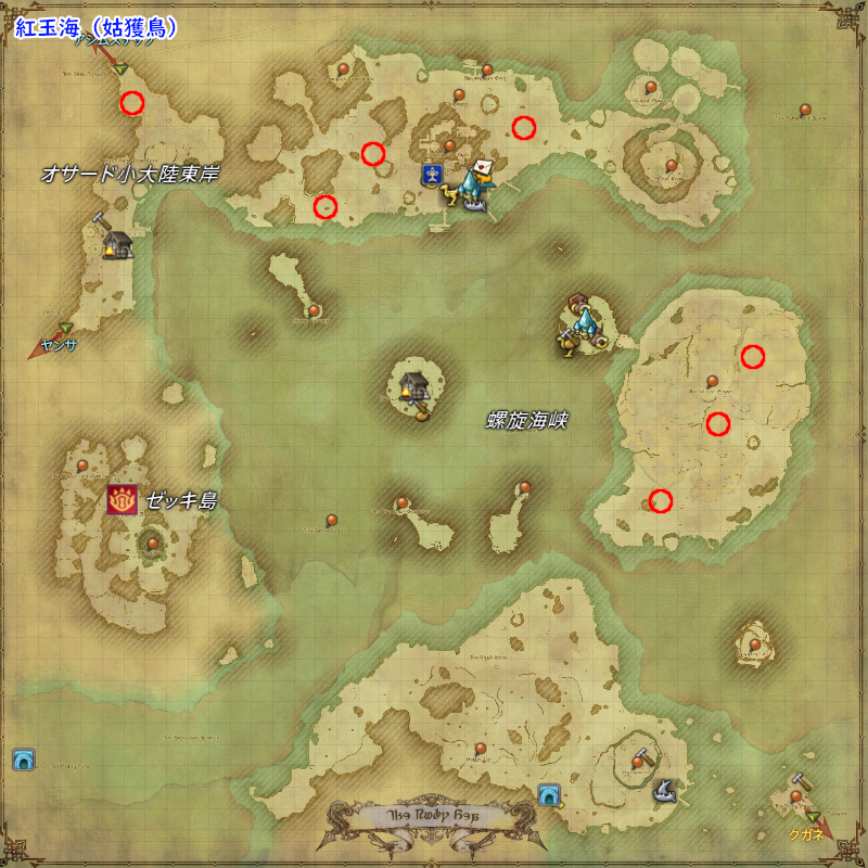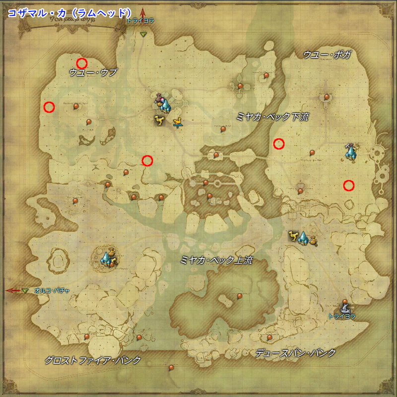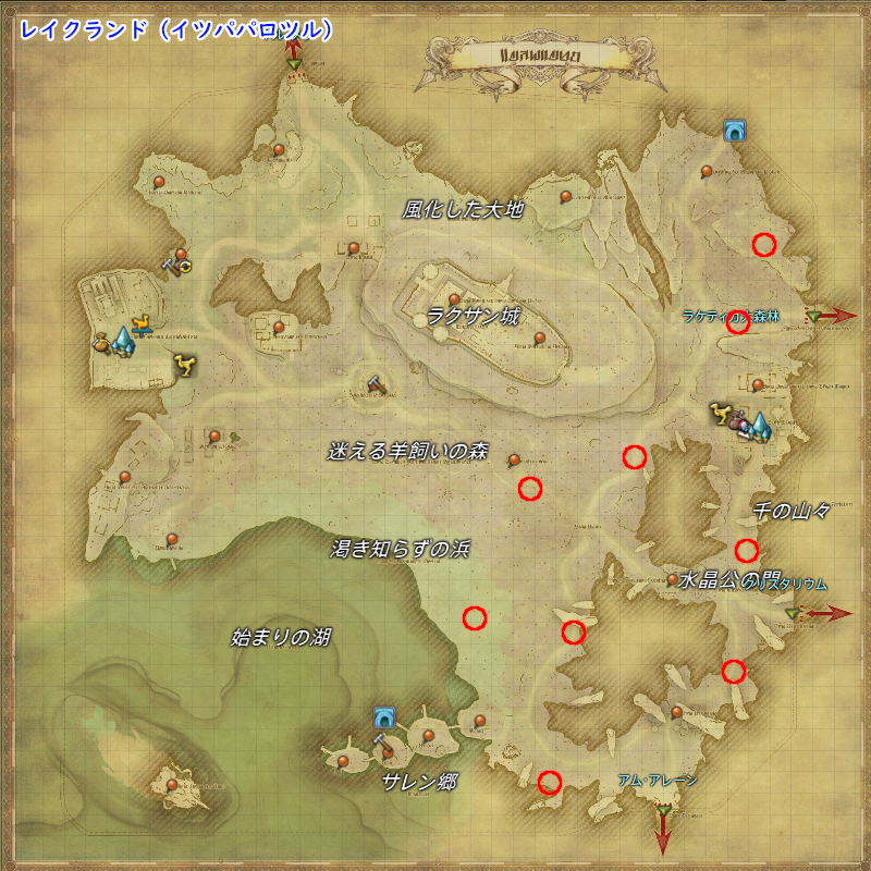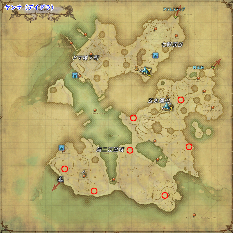 ただモブによっては、生息域が分かれていて全然違う場所を探してしまい時間の無駄になるので、下記地図で生息域を確認することである程度絞ることができます。