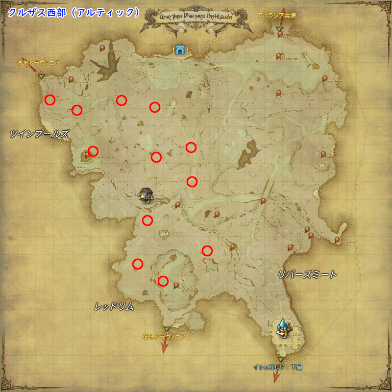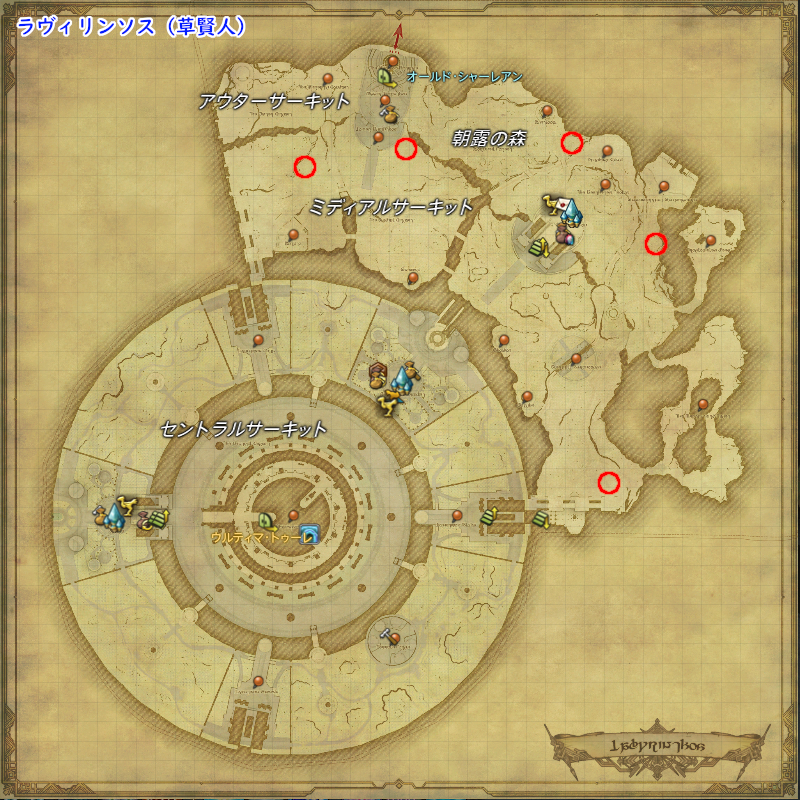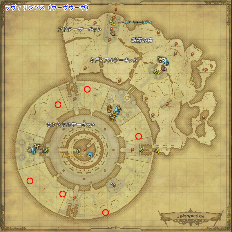 サーティーンス・チャイルドが左下の黒丸郡の右上(不動の時計塔)にいたので報告しておきます。