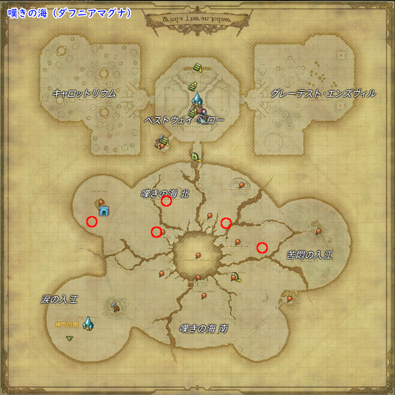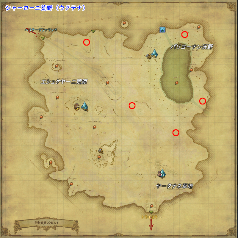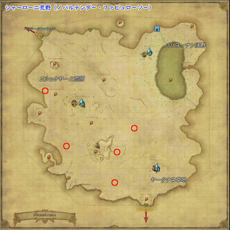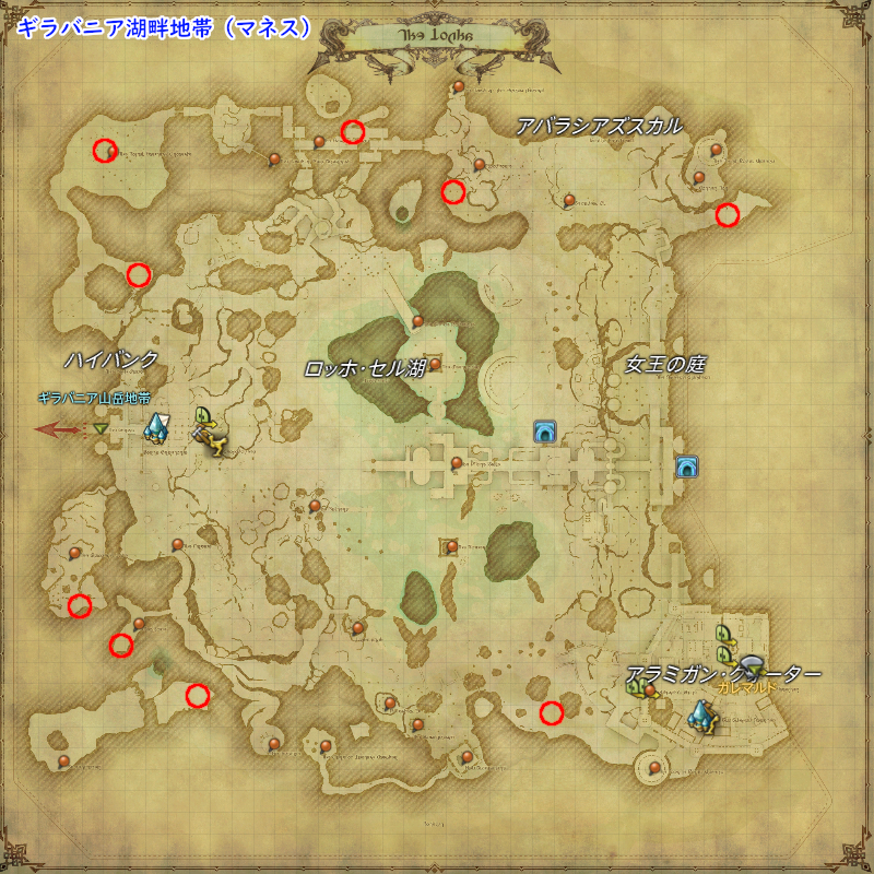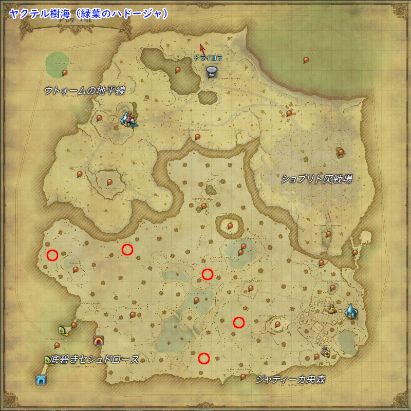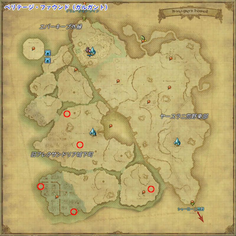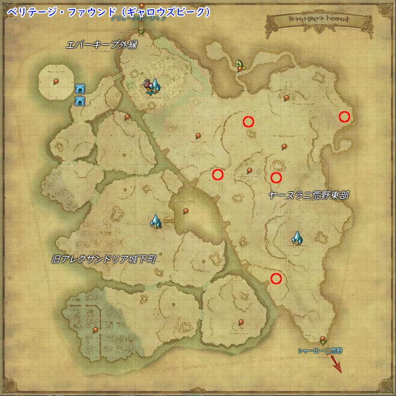 モブハント「リスキーモブ手配書(Bモブ/100点)」のモブ位置を記載したもので、他のSS/S/A/雑魚モブの位置は記載していません。