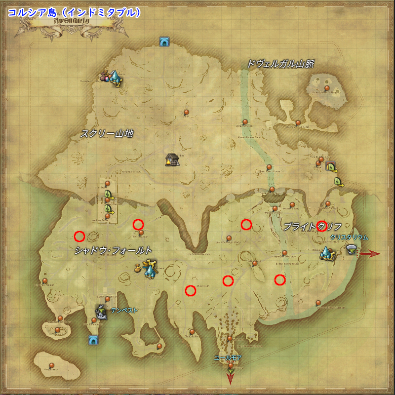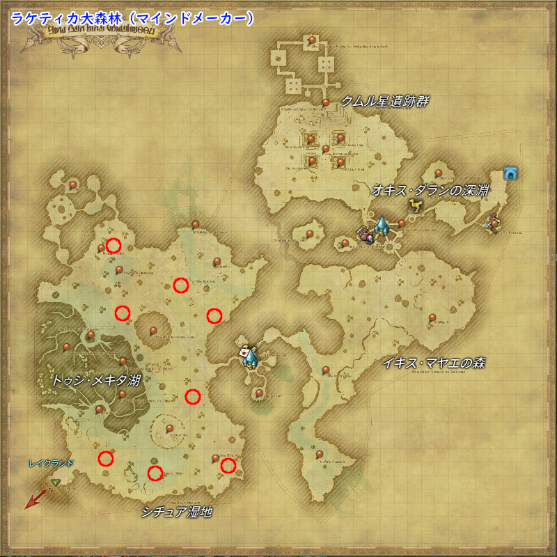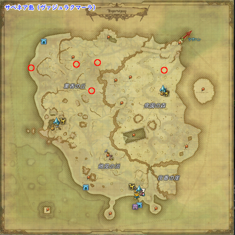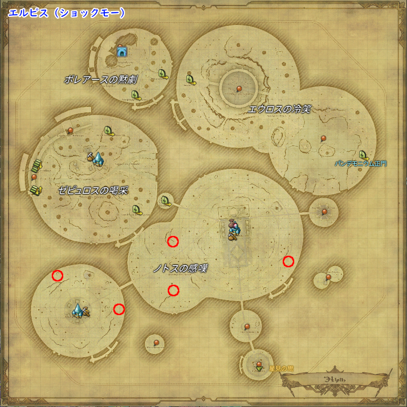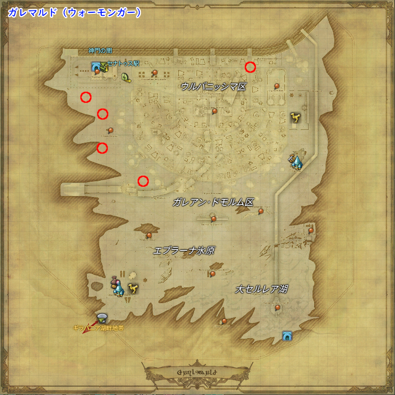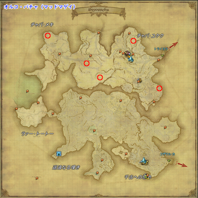 モブハント「リスキーモブ手配書(Bモブ/100点)」のモブ位置を記載したもので、他のSS/S/A/雑魚モブの位置は記載していません。