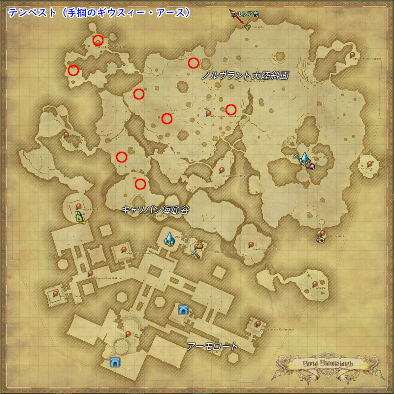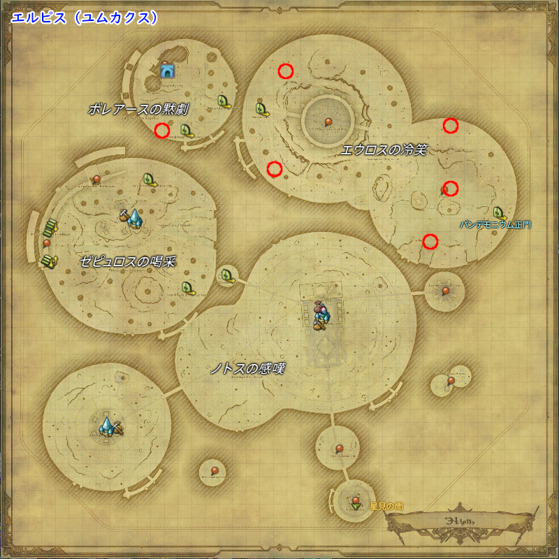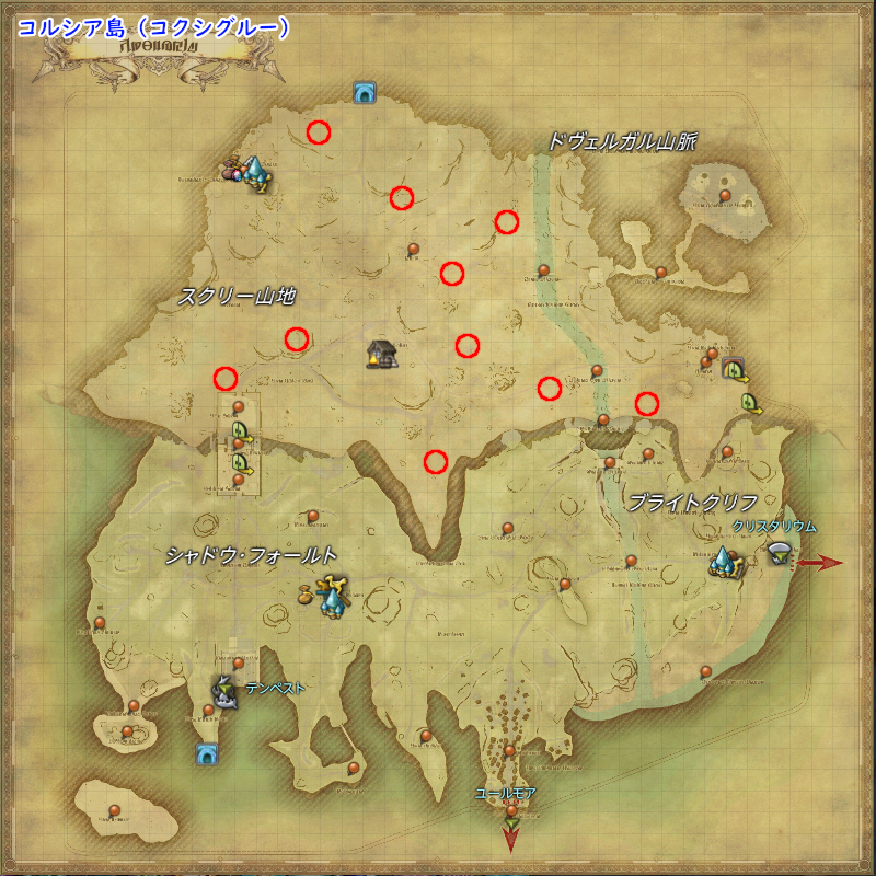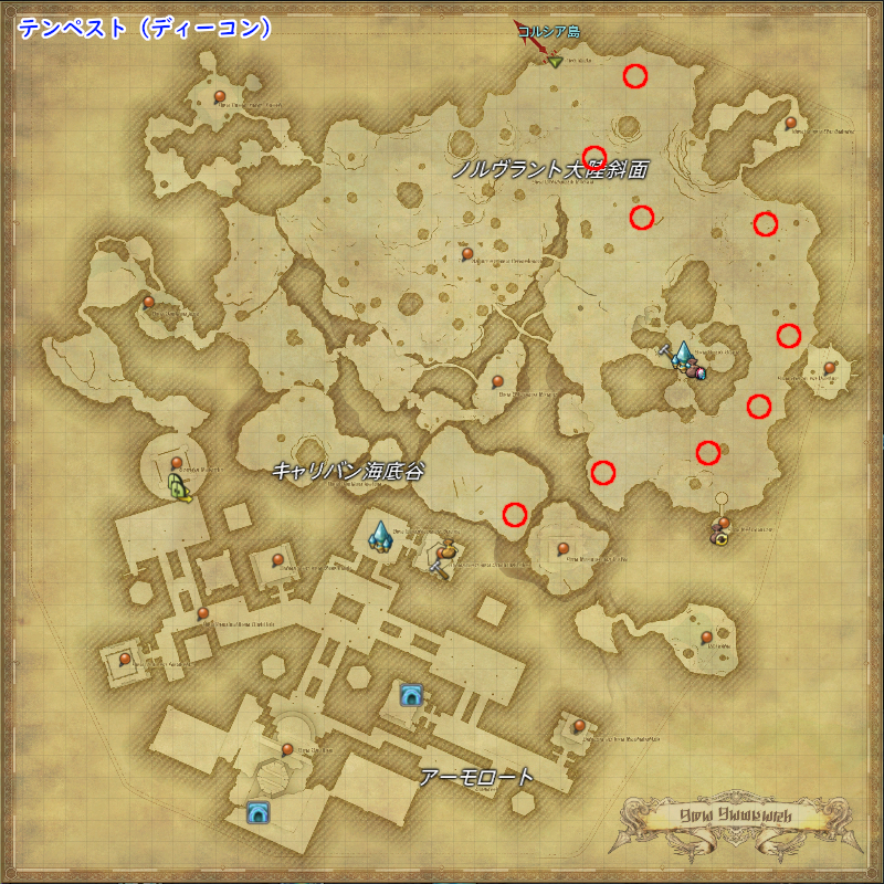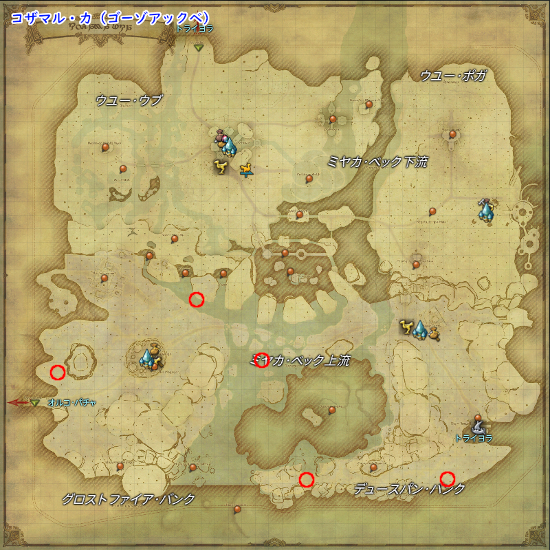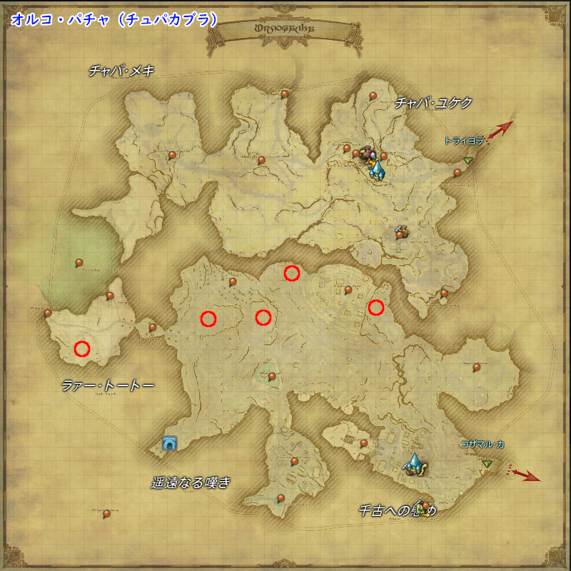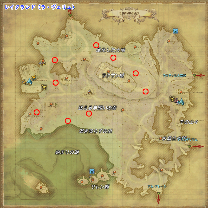 モブハント「リスキーモブ手配書(Bモブ/100点)」のモブ位置を記載したもので、他のSS/S/A/雑魚モブの位置は記載していません。